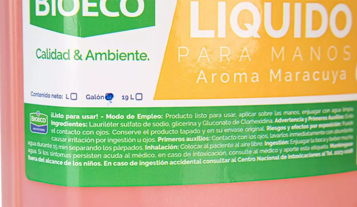 JABÓN LÍQUIDO ANTIBACTERIAL BIOECO MARACUYA 1 GALÓN